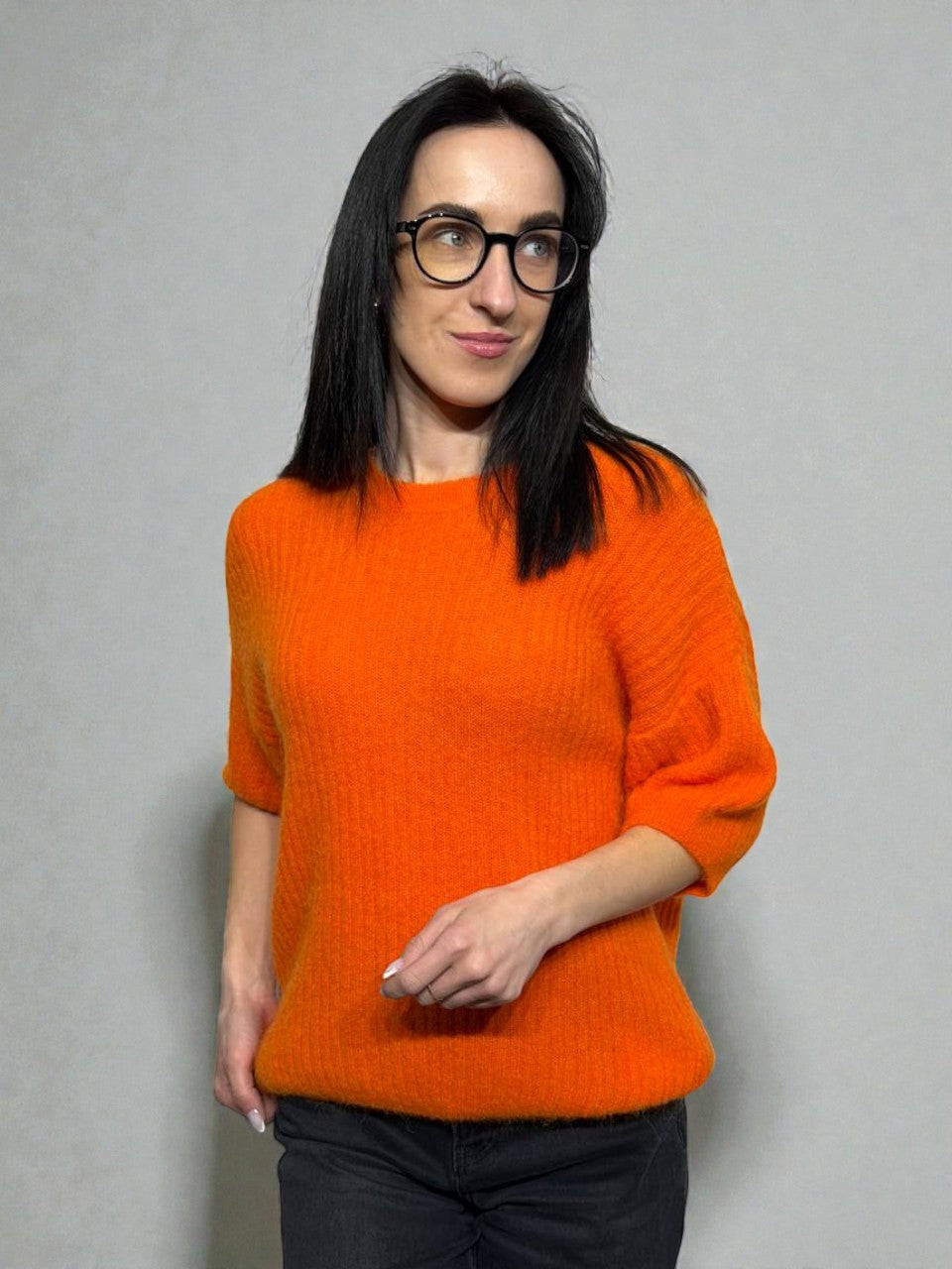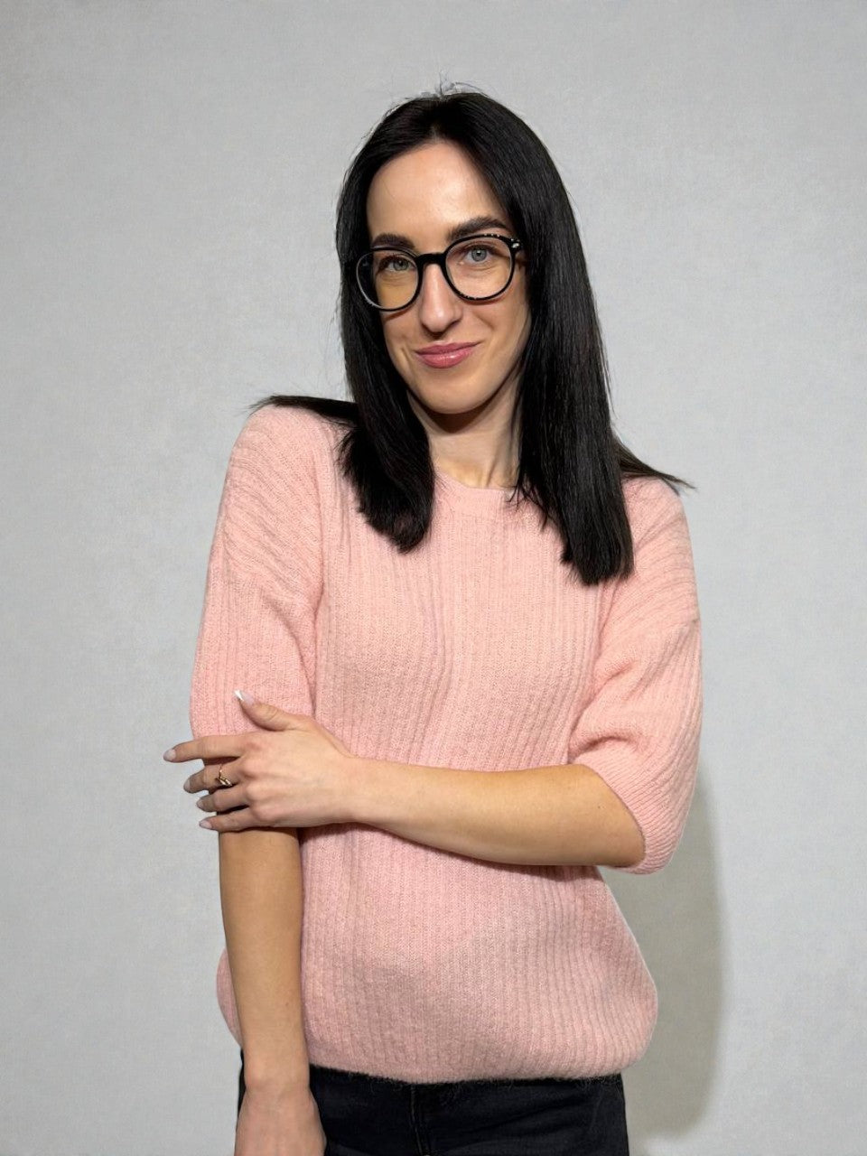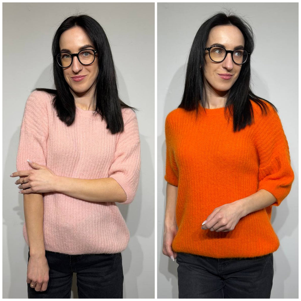 Maigs un ērts rozā rievots adīts džemperis ar 3/4 piedurknēm. Sievišķīgs siluets, patīkams materiāls un universāls dizains, kas lieliski der gan ikdienai, gan elegantākam tēlam. Viegli kombinējams ar džinsiem, svārkiem vai biksēm.