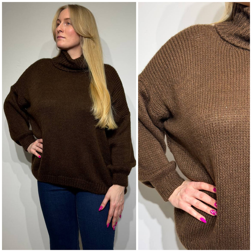 Šiltas ir eleganti moteriškas megztos palaidinės rudos spalvos atspalvyje, puikiai papildysiančios rudens ir žiemos drabužių spintą. Megztinis pagamintas iš minkštos, malonios megztos medžiagos, kuri užtikrina komfortą ir šilumą visą dieną.