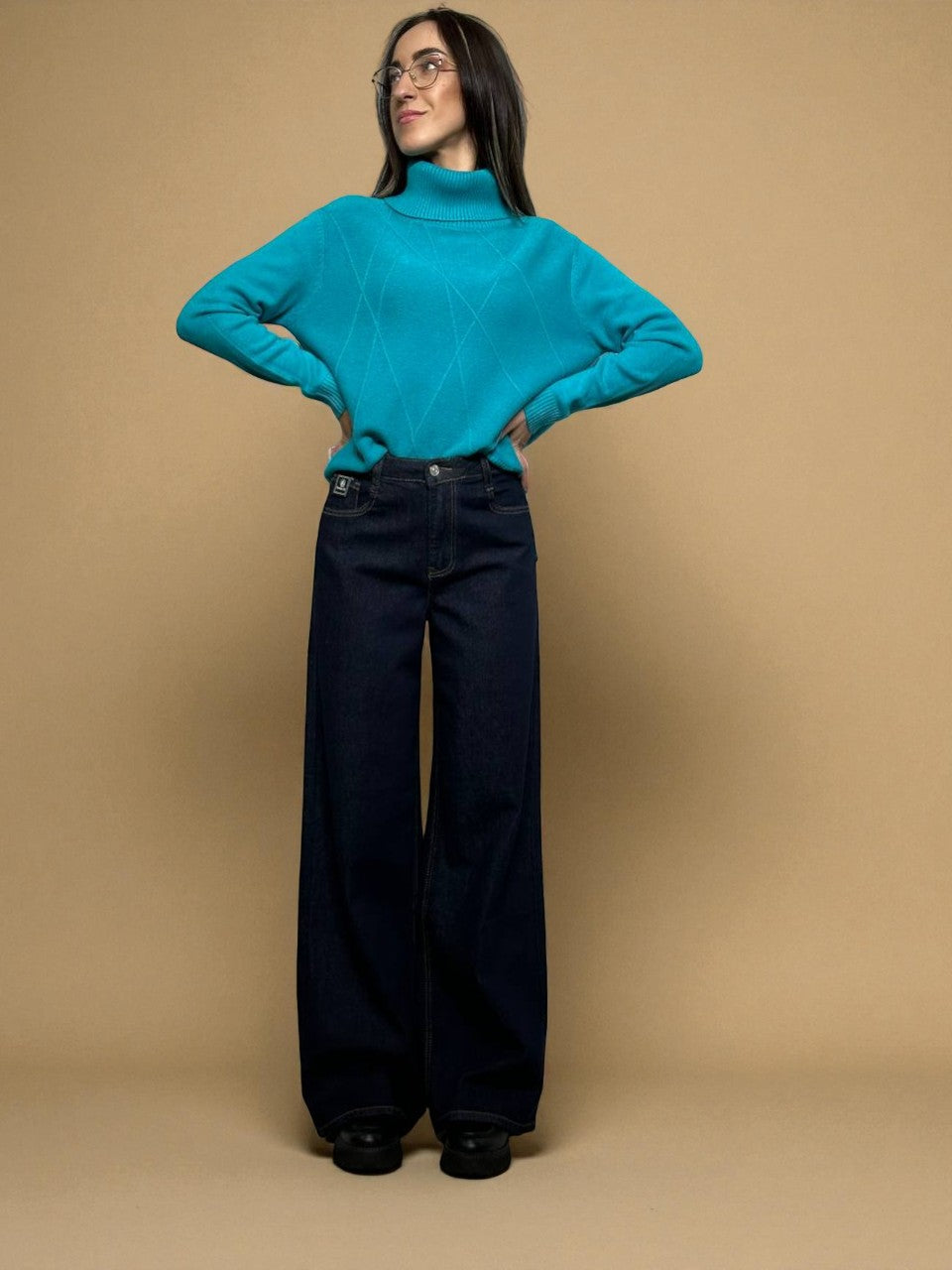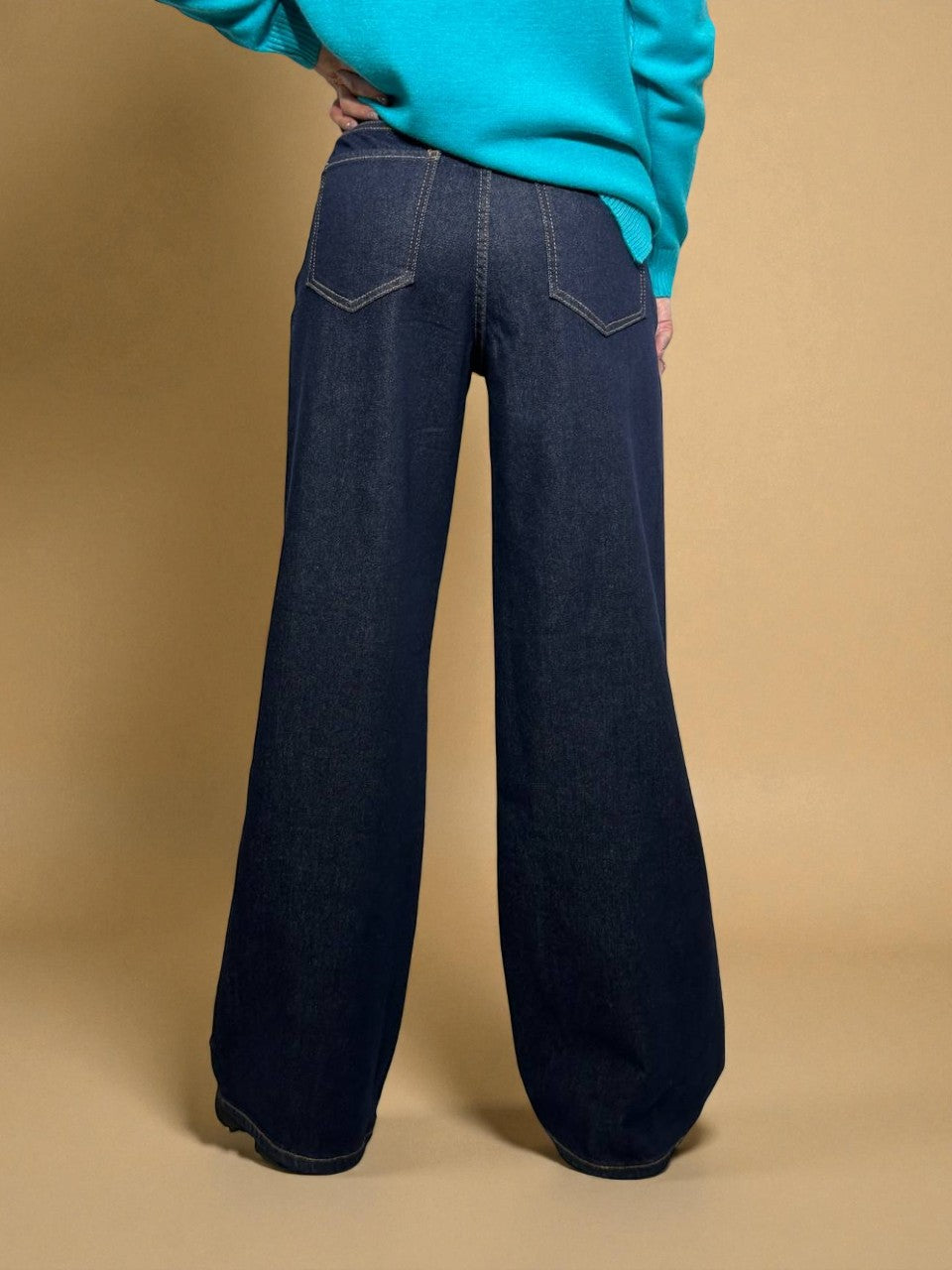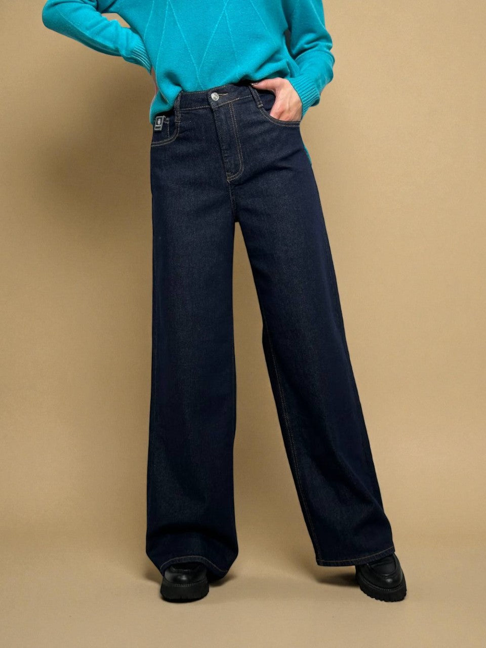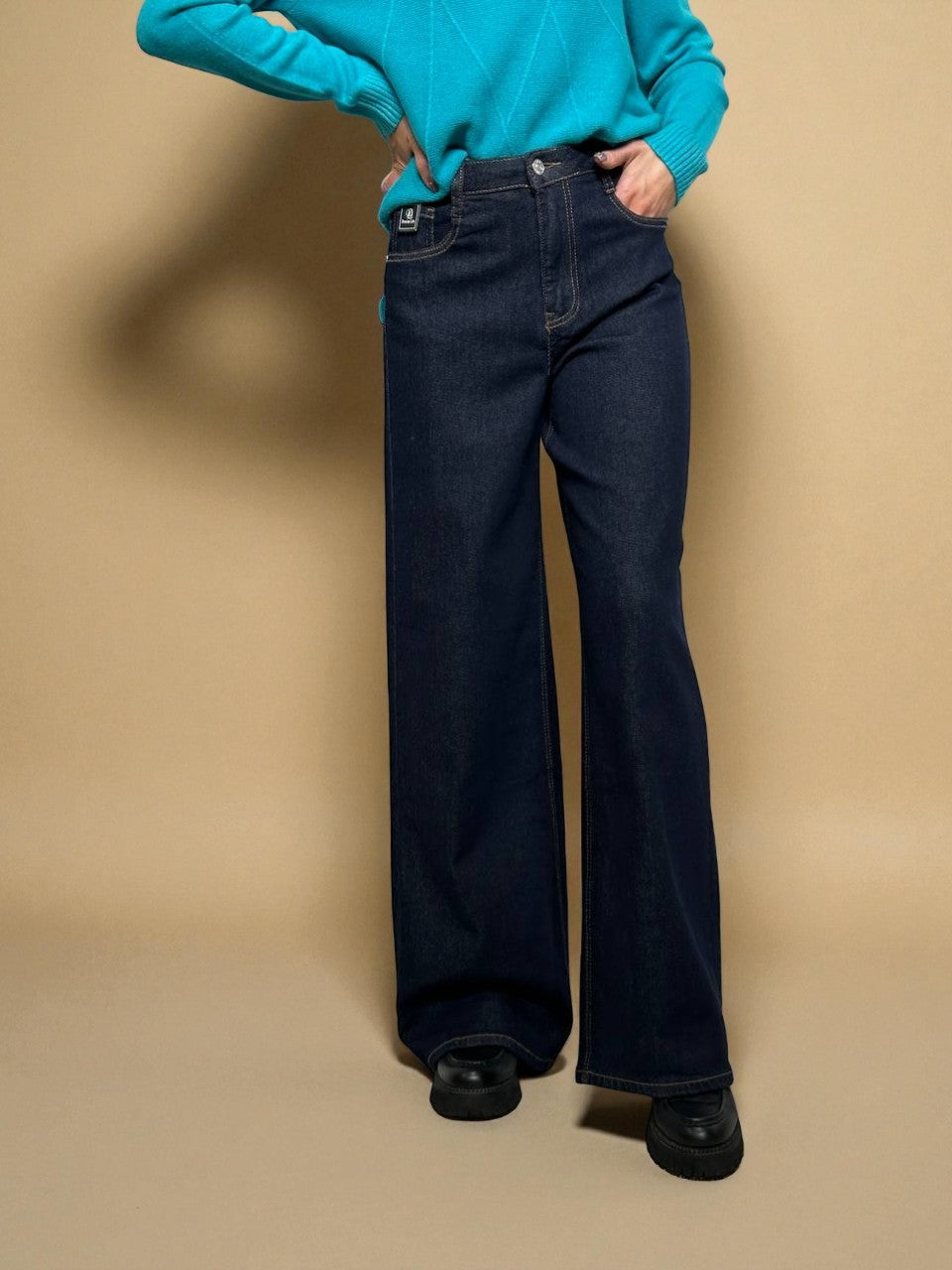 Super plačios kojų tamsios džinsinės kelnės moterims
