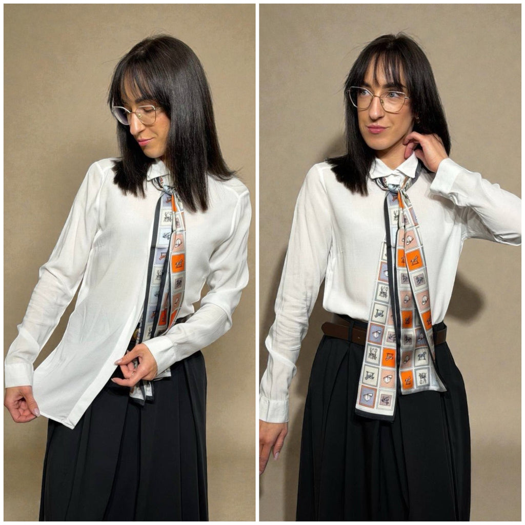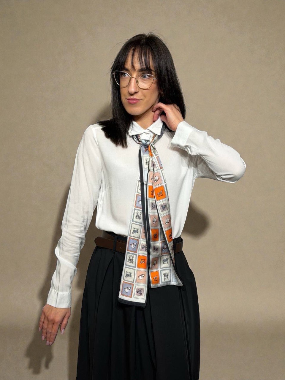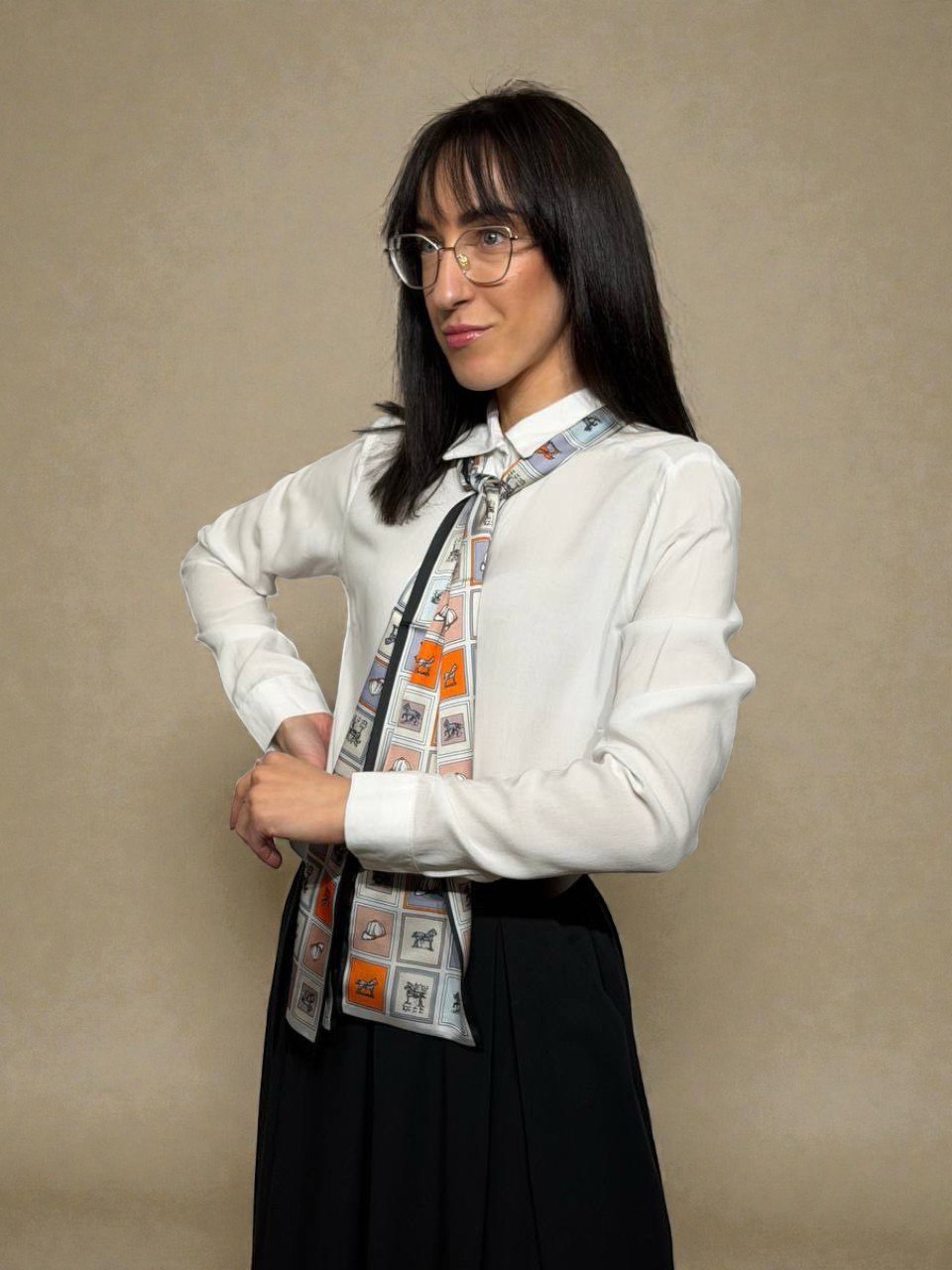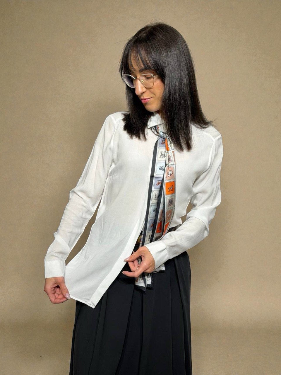 Klasiska kokvilnas blūze baltā krāsā izceļas ar tīru eleganci un svaigu, universālu stilu. Tā ir viegli kombinējama gan ikdienas tēliem, gan svinīgākiem brīžiem, piešķirot koptu un gaišu akcentu jebkuram apģērbu komplektam.