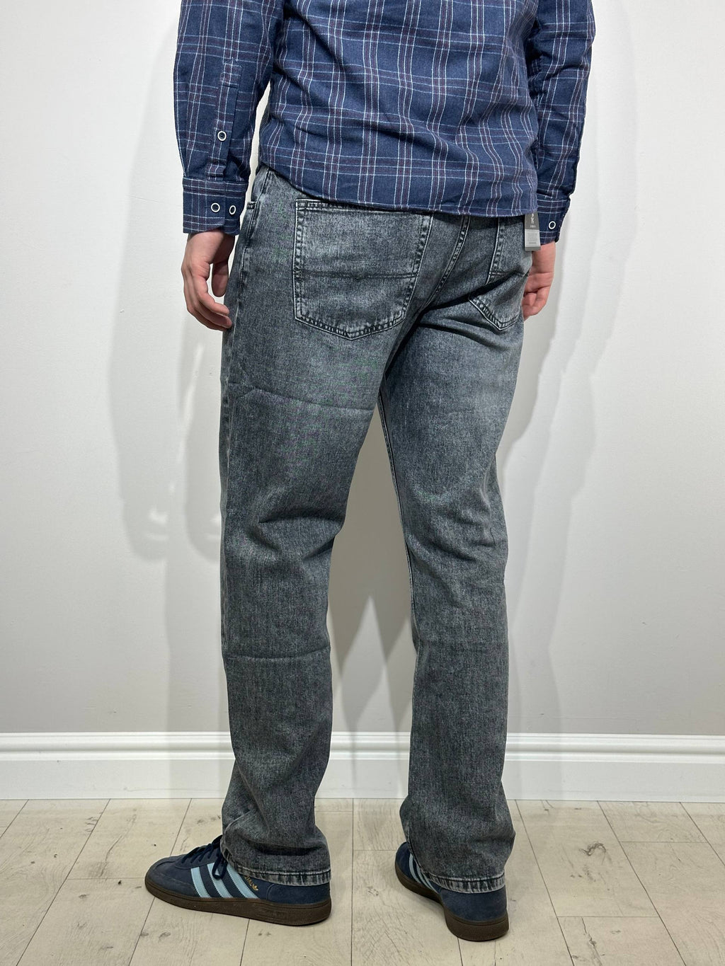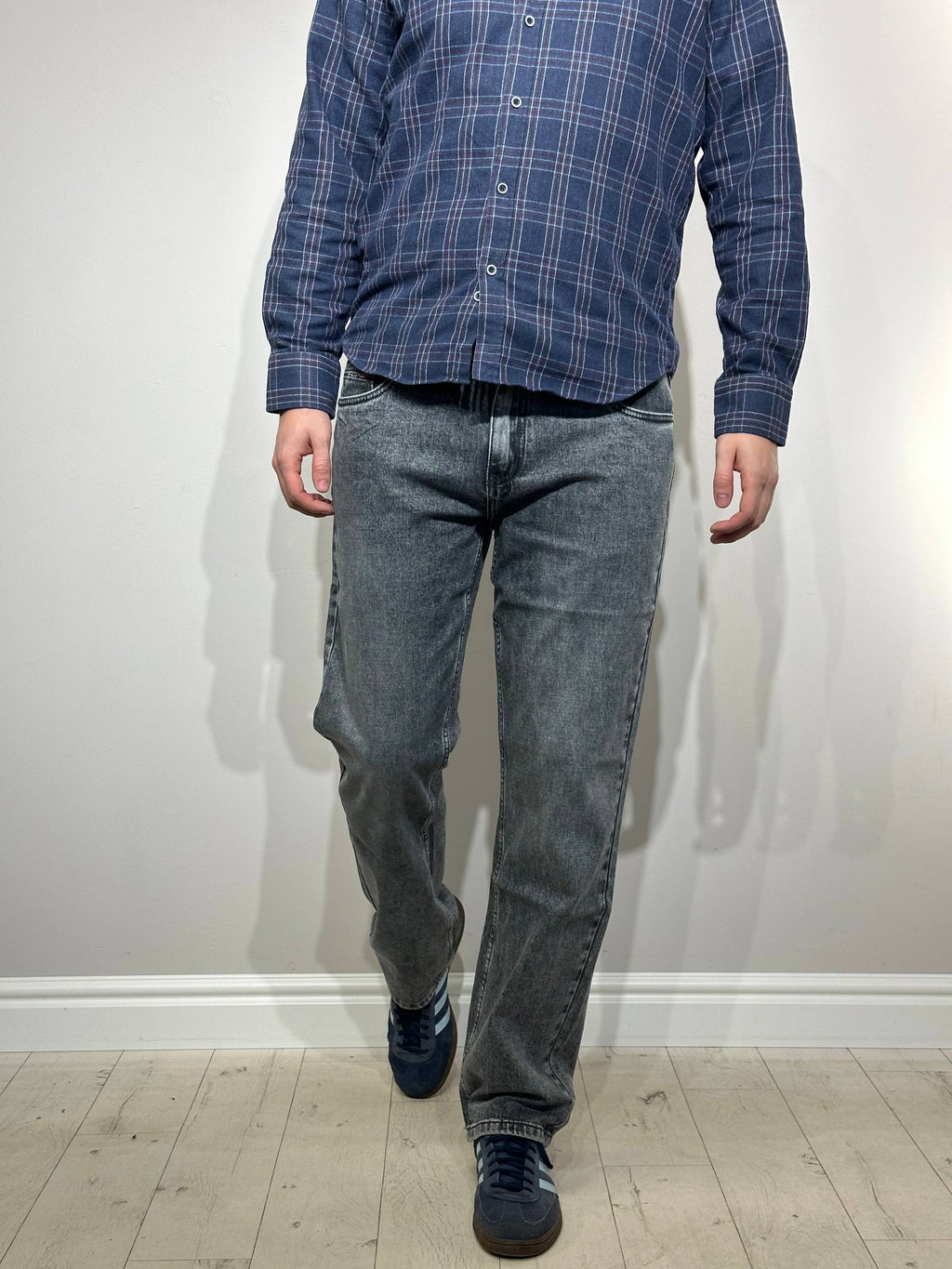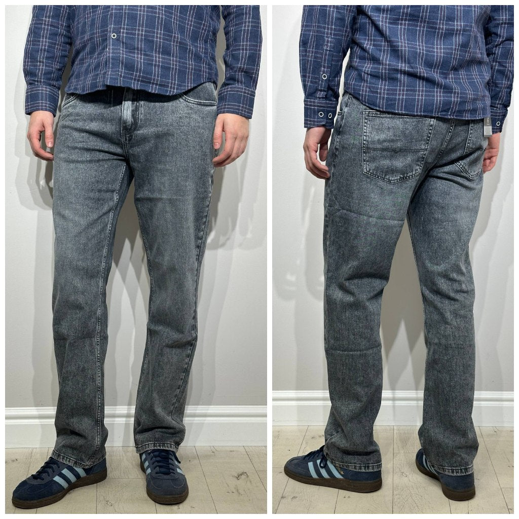 Brīvi pelēki džinsi ar elastīgu audumu – ērti, stilīgi un piemēroti ikdienai. Elastāns nodrošina kustību brīvību un labu piegulšanu, bet brīvais piegriezums rada modernu un komfortablu siluetu.