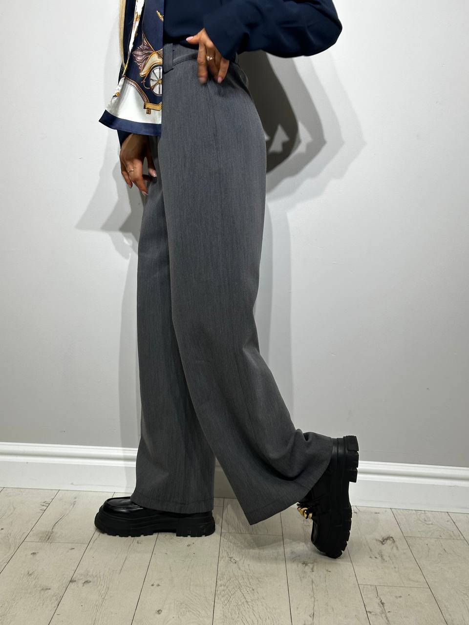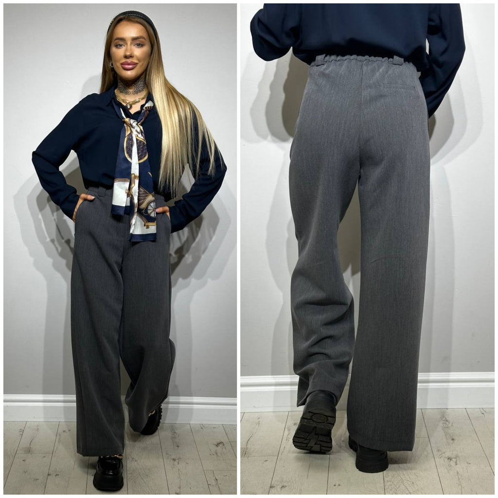 Šīs elegantās sieviešu bikses ir īsts garderobes must-have! Kvalitatīvs, gluds audums un taisnais piegriezums piešķir siluetam izsmalcinātību, bet pelēkais tonis padara tās neticami universālas — perfekti piemērotas gan darbam, gan stilīgam ikdienas tēlam.Augstā jostasvieta vizuāli pagarina kājas un nodrošina ērtu, pārliecinošu piegulumu, savukārt brīvais kritiens rada viegluma un kustību brīvības sajūtu.