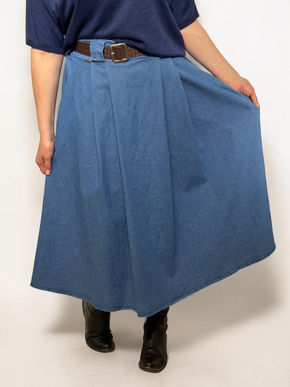 Modernas elastīgas džinsa bikses komfortam un stilam ikdienai. Mīksts, staipīgs džinss nodrošina ērtu piegulumu un kustību brīvību visas dienas garumā, savukārt augstā jostasvieta vizuāli izceļ siluetu. Īpašu akcentu piešķir dekoratīvs lakatiņš jostasvietā, kas piešķir tēlam sievišķīgu un trendīgu pieskārienu. Lakatiņu var sasiet dažādos veidos, lai pielāgotu izskatu savam stilam.