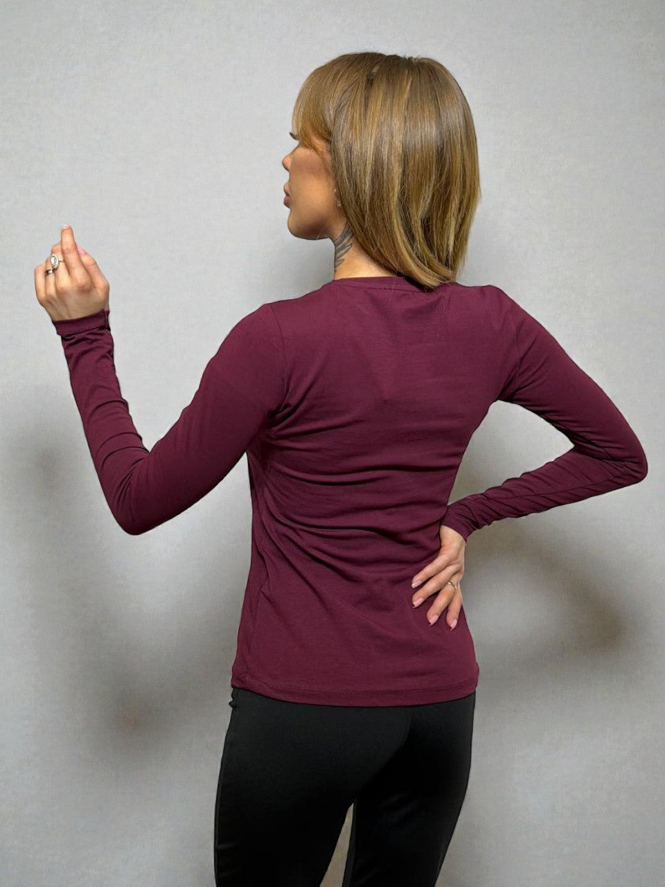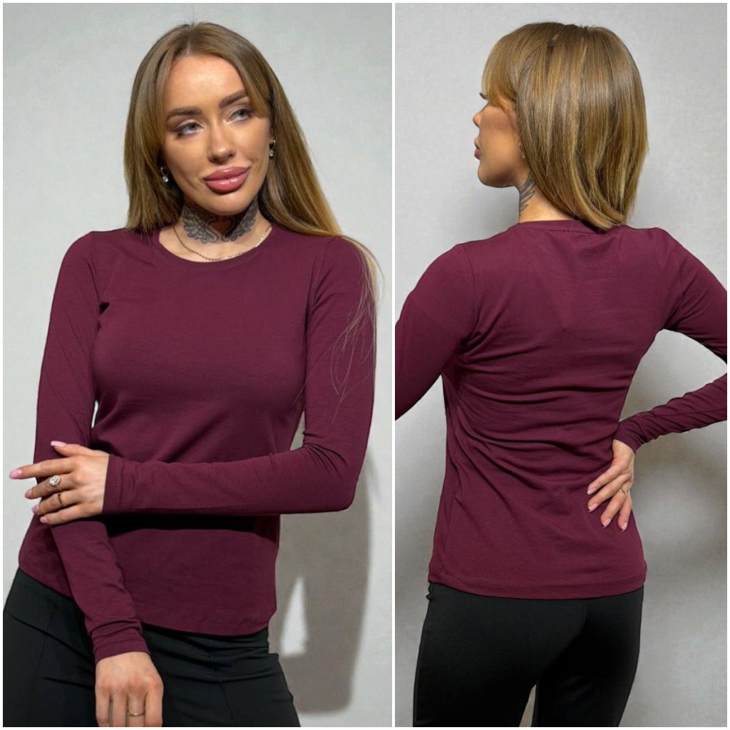 Sieviešu tops elegantā bordo krāsā ar klasisku, pieguļošu siluetu. Vienkāršais dizains padara šo blūzi par universālu garderobes pamatelementu, kas lieliski iederas gan ikdienas, gan smart casual stilā. Garās piedurknes un apaļais kakla izgriezums nodrošina komfortu un koptēla līdzsvaru.