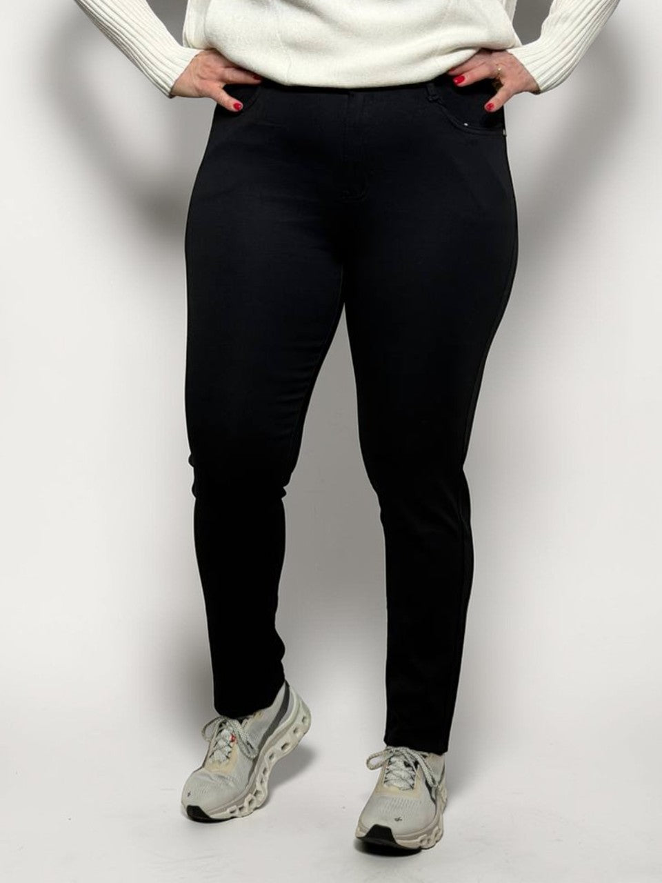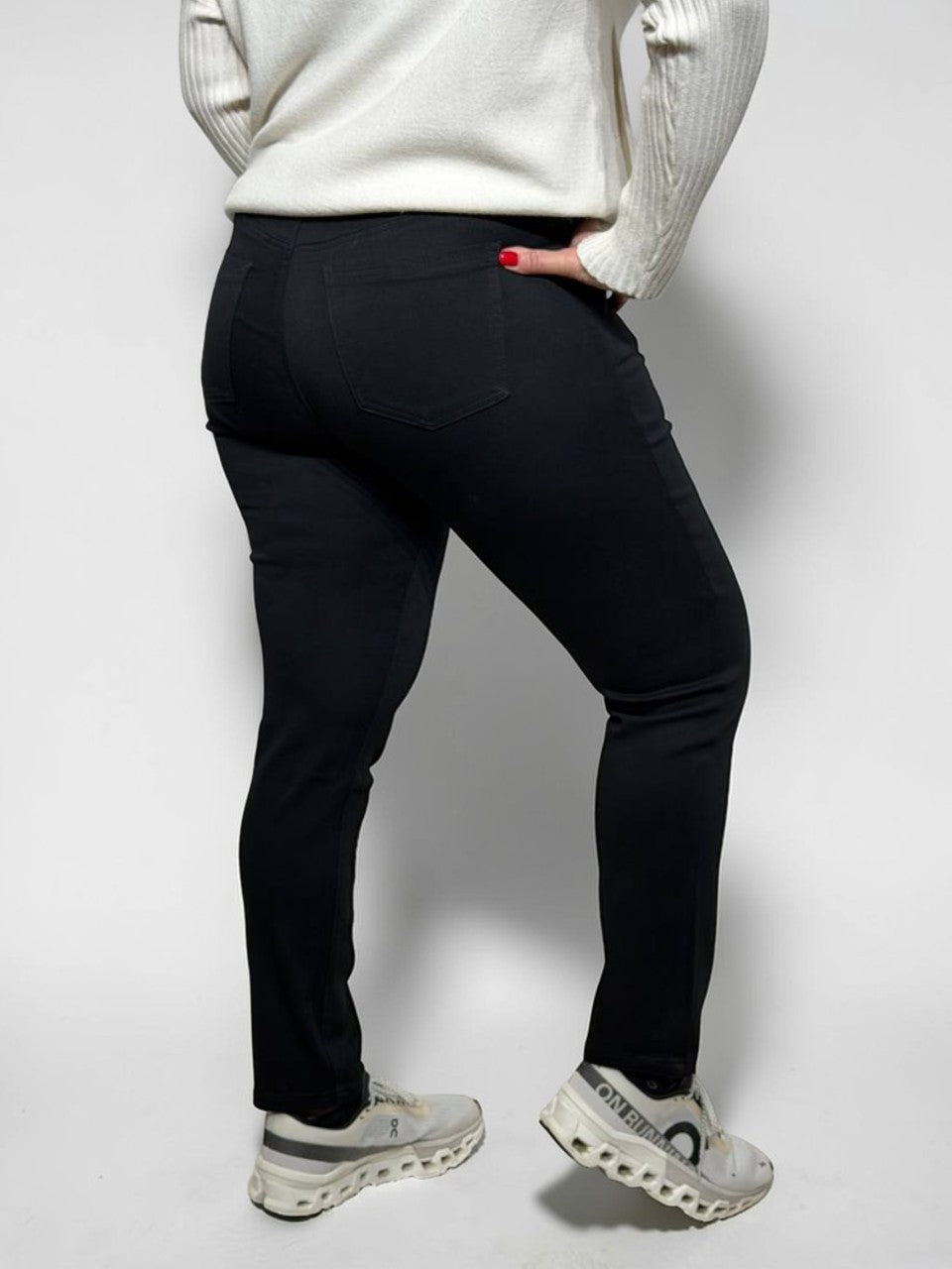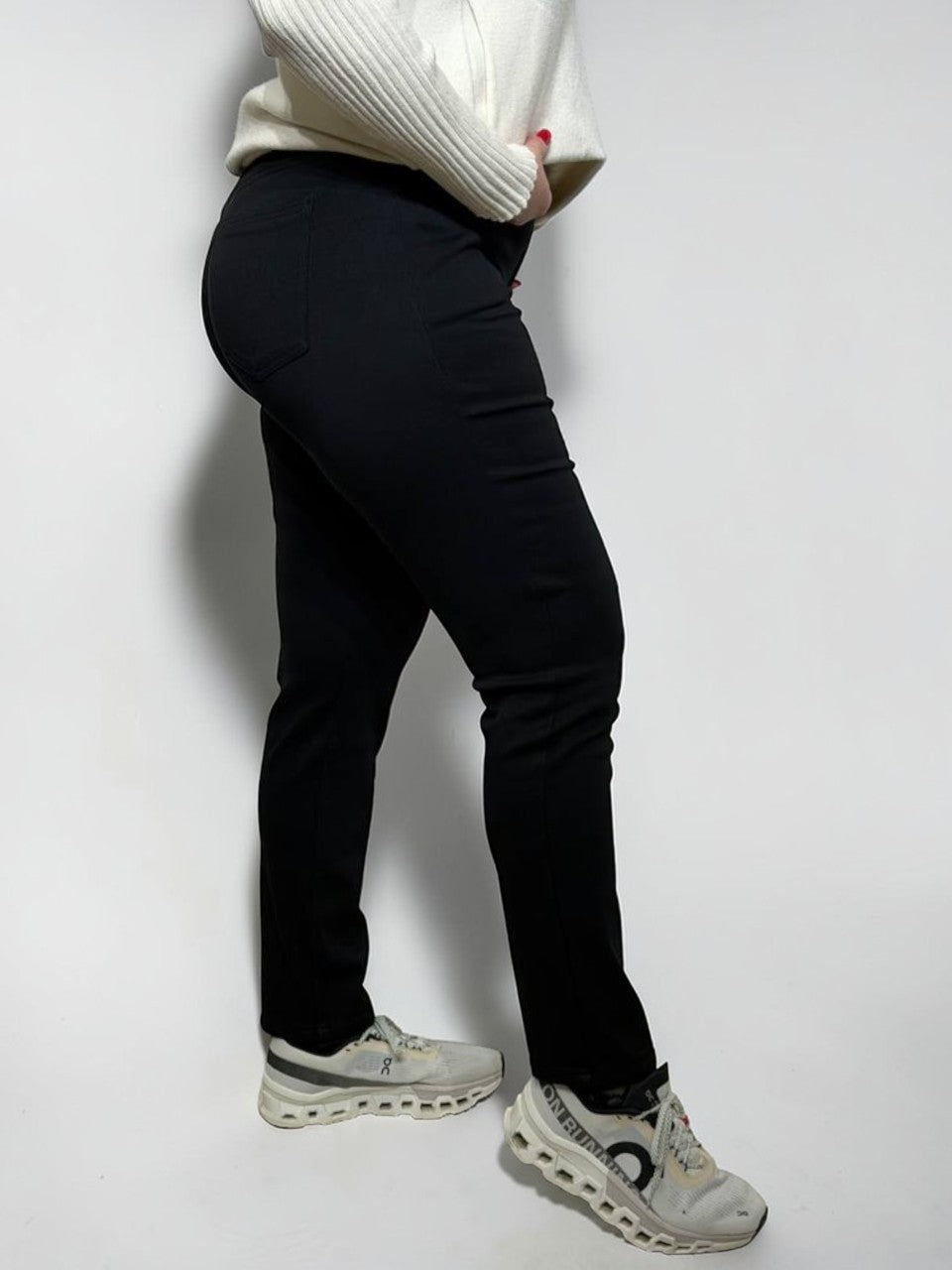 Pateicoties super elastīgajam audumam, džinsi brīvi pielāgojas kustībām — tie nestīvē, nespiež un saglabā formu visas dienas garumā. Augstā jostasvieta skaisti izceļ vidukli un nodrošina stabilu, ērtu piegulumu.