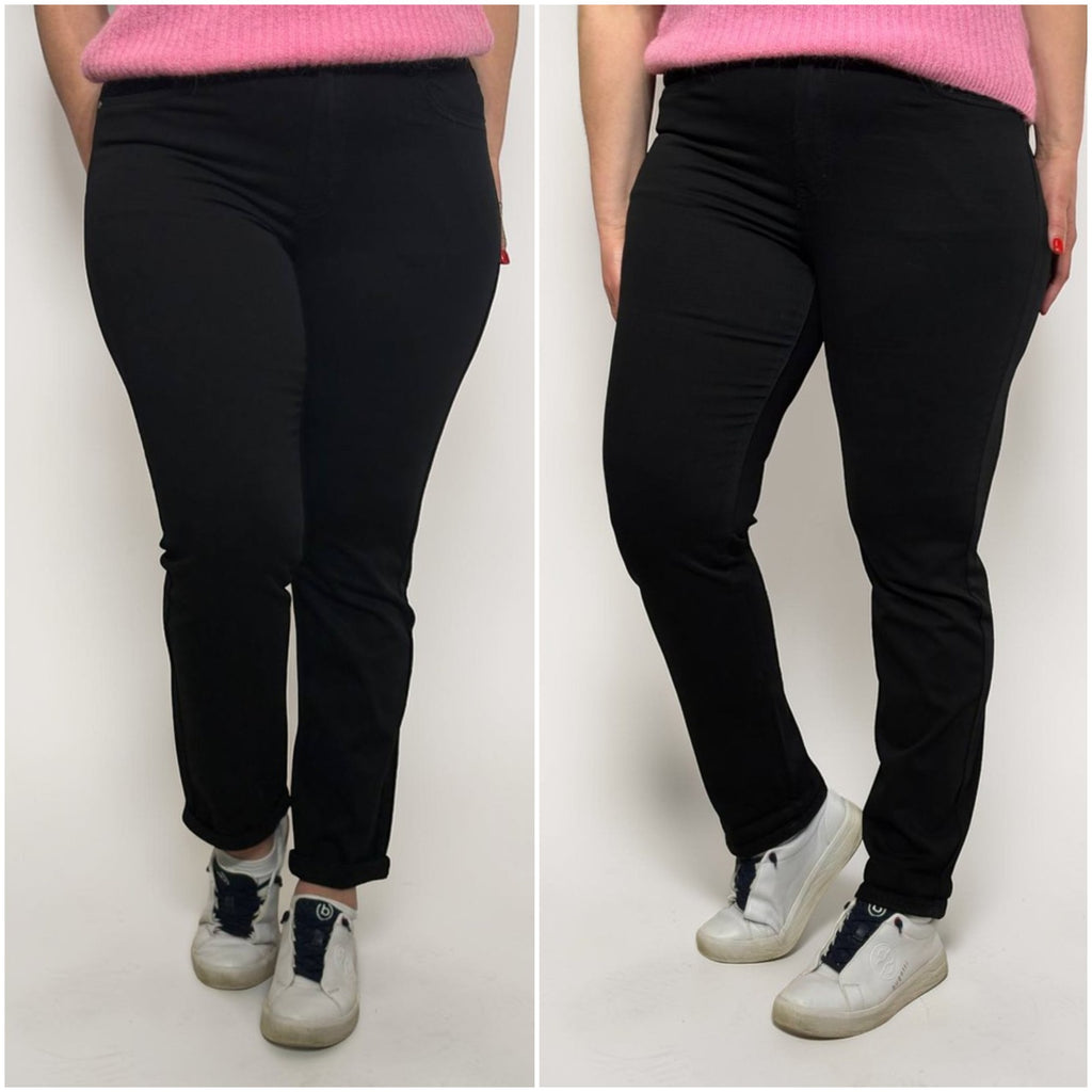 Ērti un sievišķīgi zili džinsi, kas apvieno klasisku dizainu ar maksimālu komfortu. Šis modelis veidots ar augsto jostasvietu, kas skaisti akcentē vidukli un nodrošina patīkamu, stabilu piegulumu, nedaudz sašaurinātās staras ar atlocītu apakšmalu piešķir modernu un viegli kombinējamu izskatu.