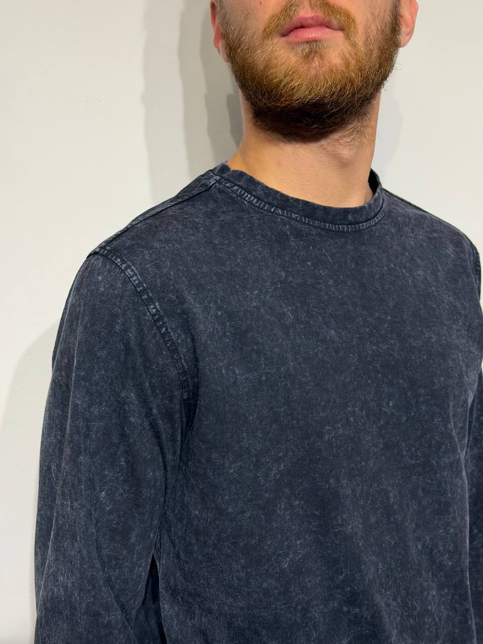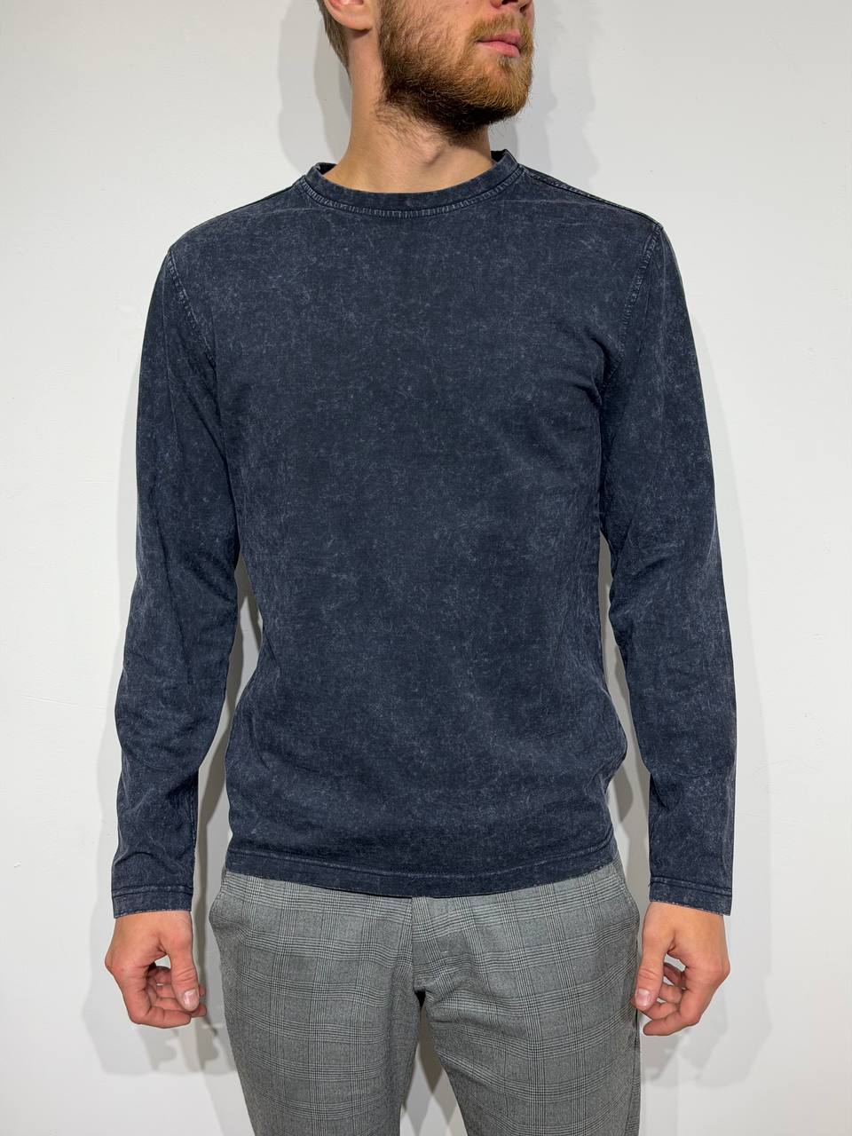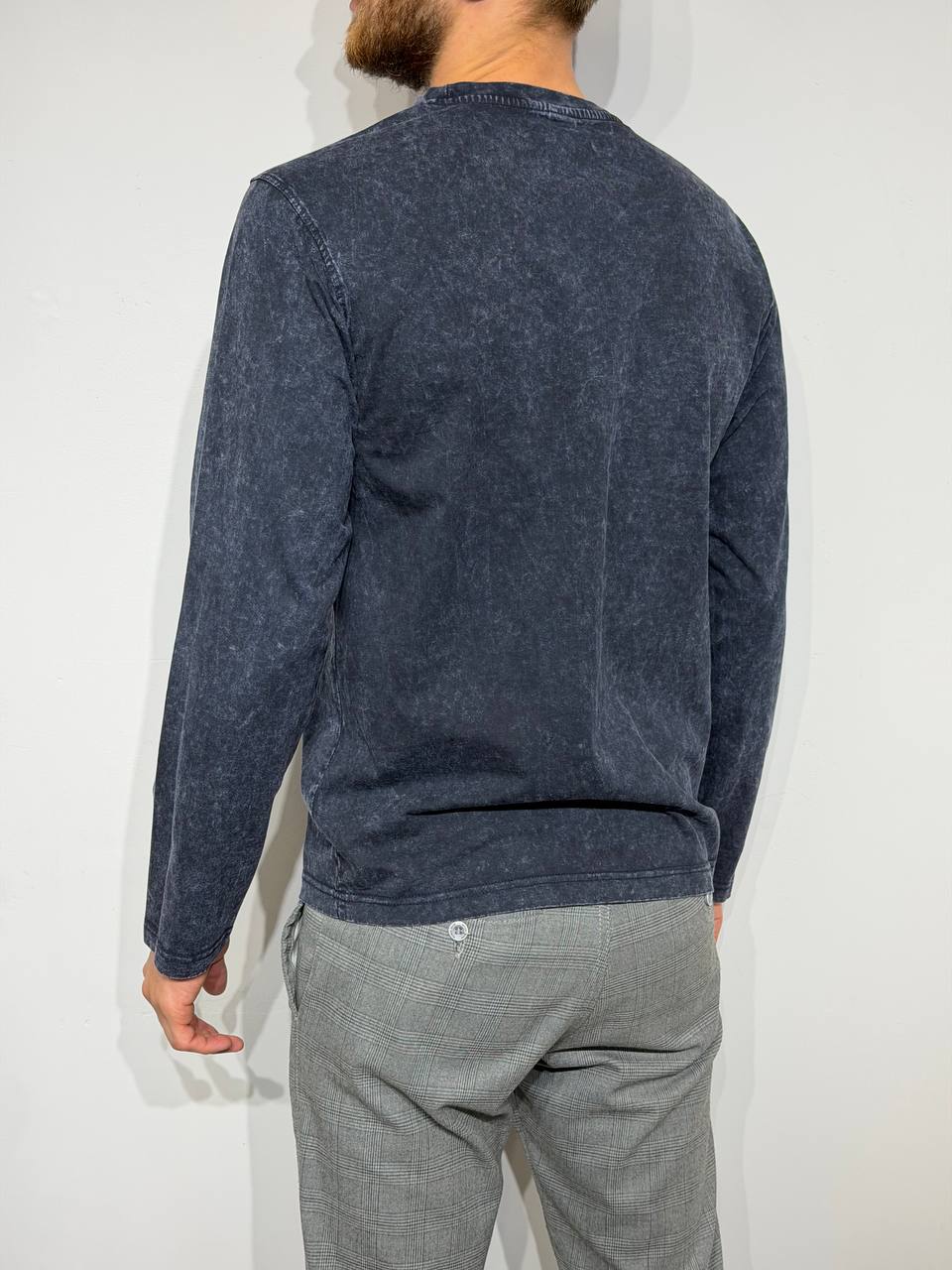 Tumšs vīriešu T-krekls ar garām rokām no 100% kokvilnas. Mīksts, elpojošs audums nodrošina komfortu visas dienas garumā, bet klasisks piegriezums ļauj to viegli kombinēt gan ikdienas, gan smart casual stilā. Vienkāršs, kvalitatīvs pamatelements garderobei.