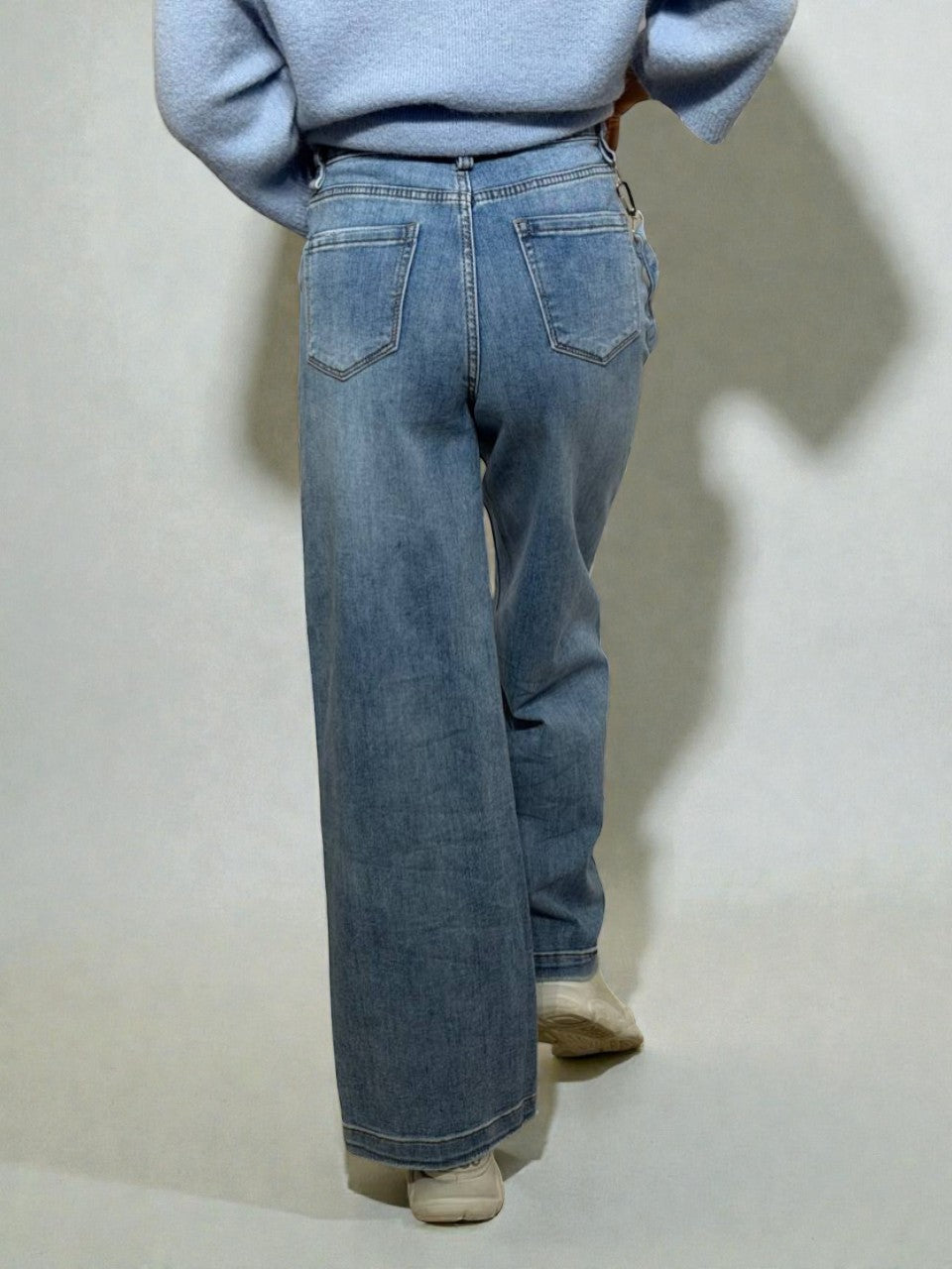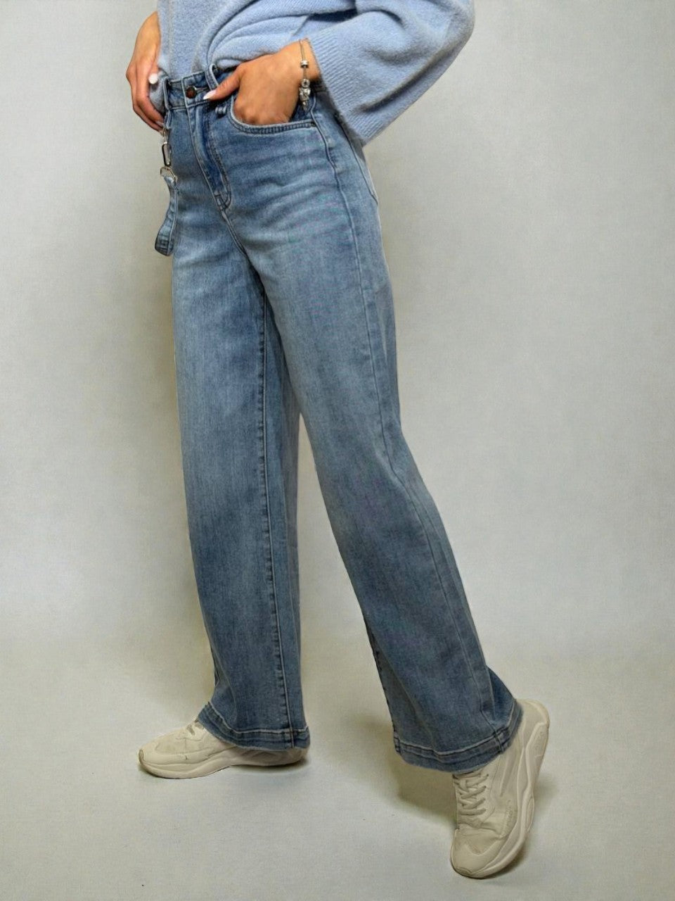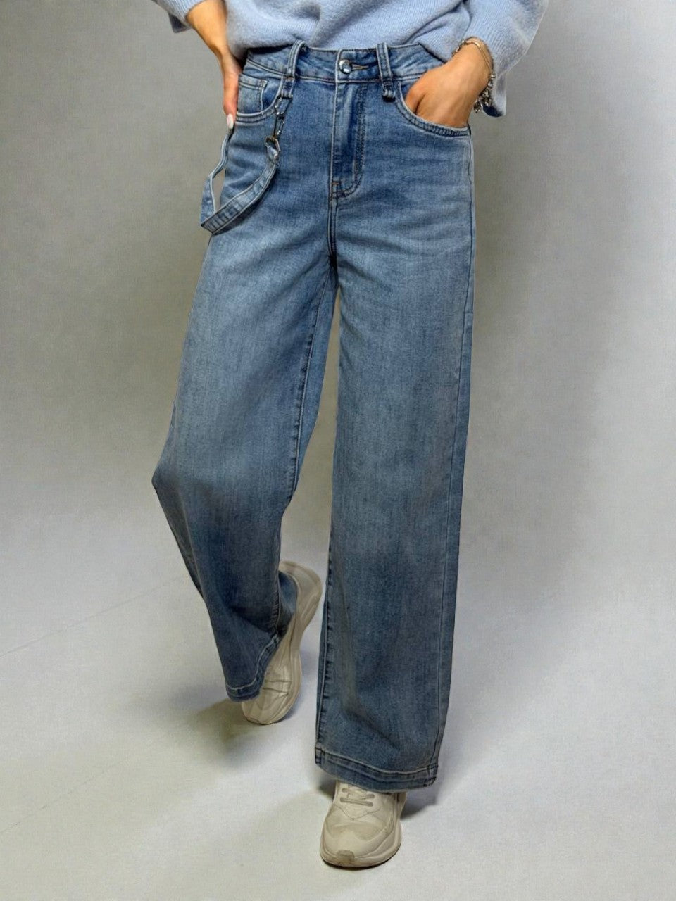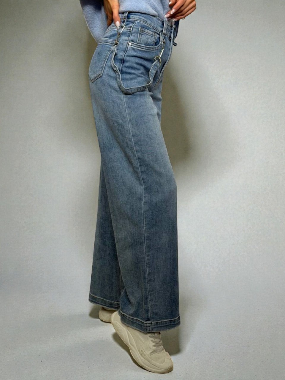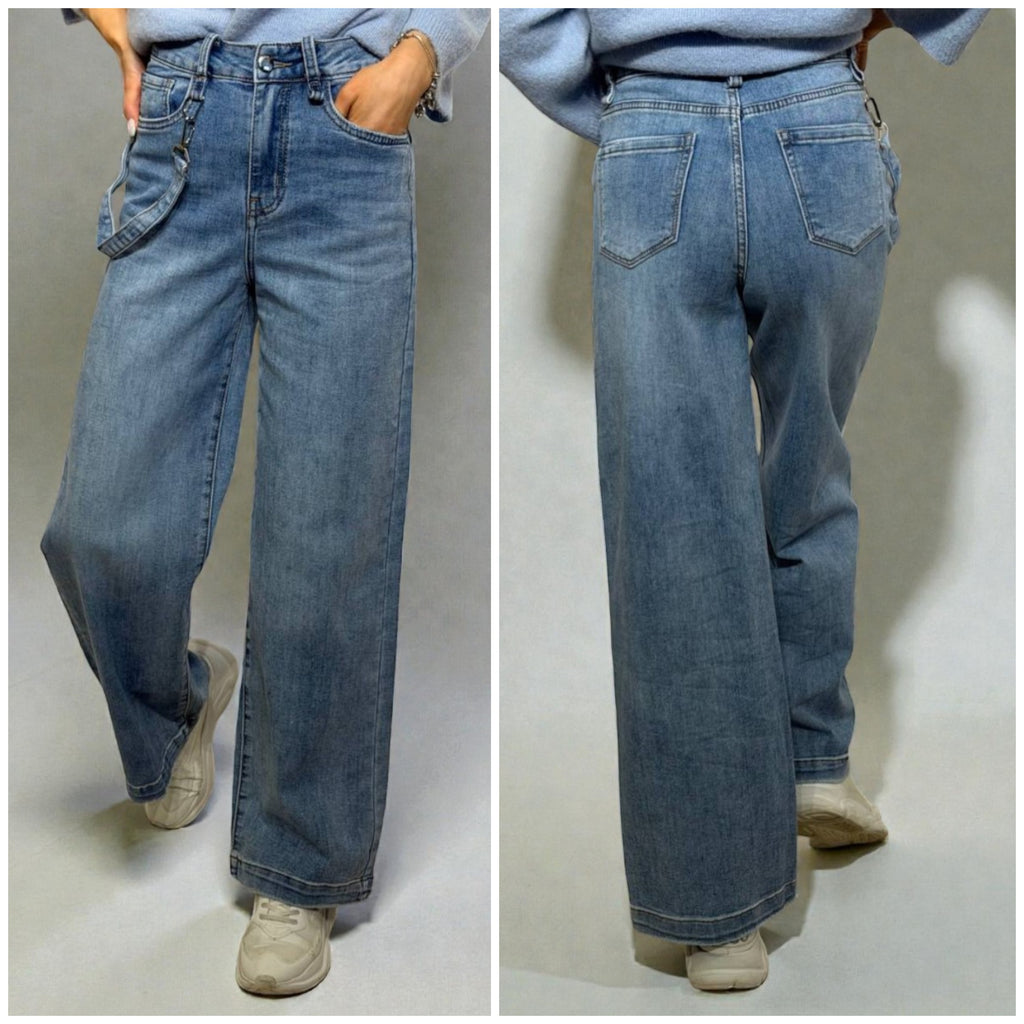 Wide leg džinsi ar dekoratīvu karabīnes lentīti