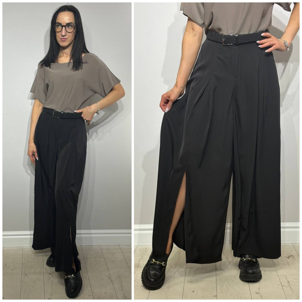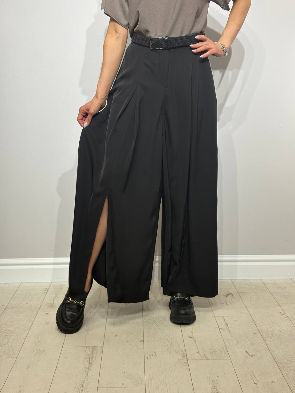 Элегантные брюки широкого кроя с разрезами