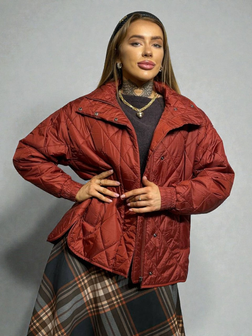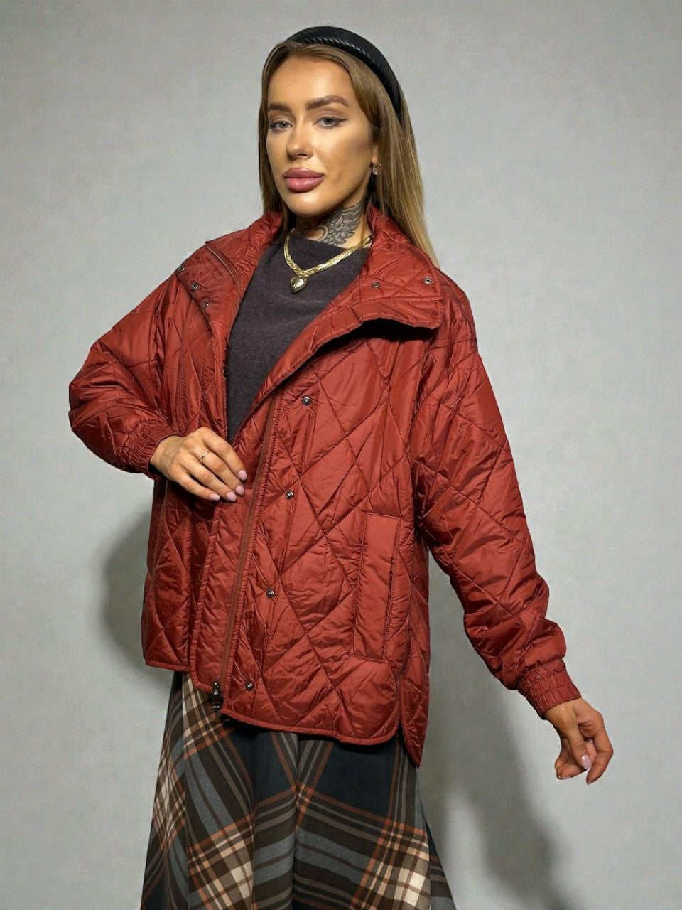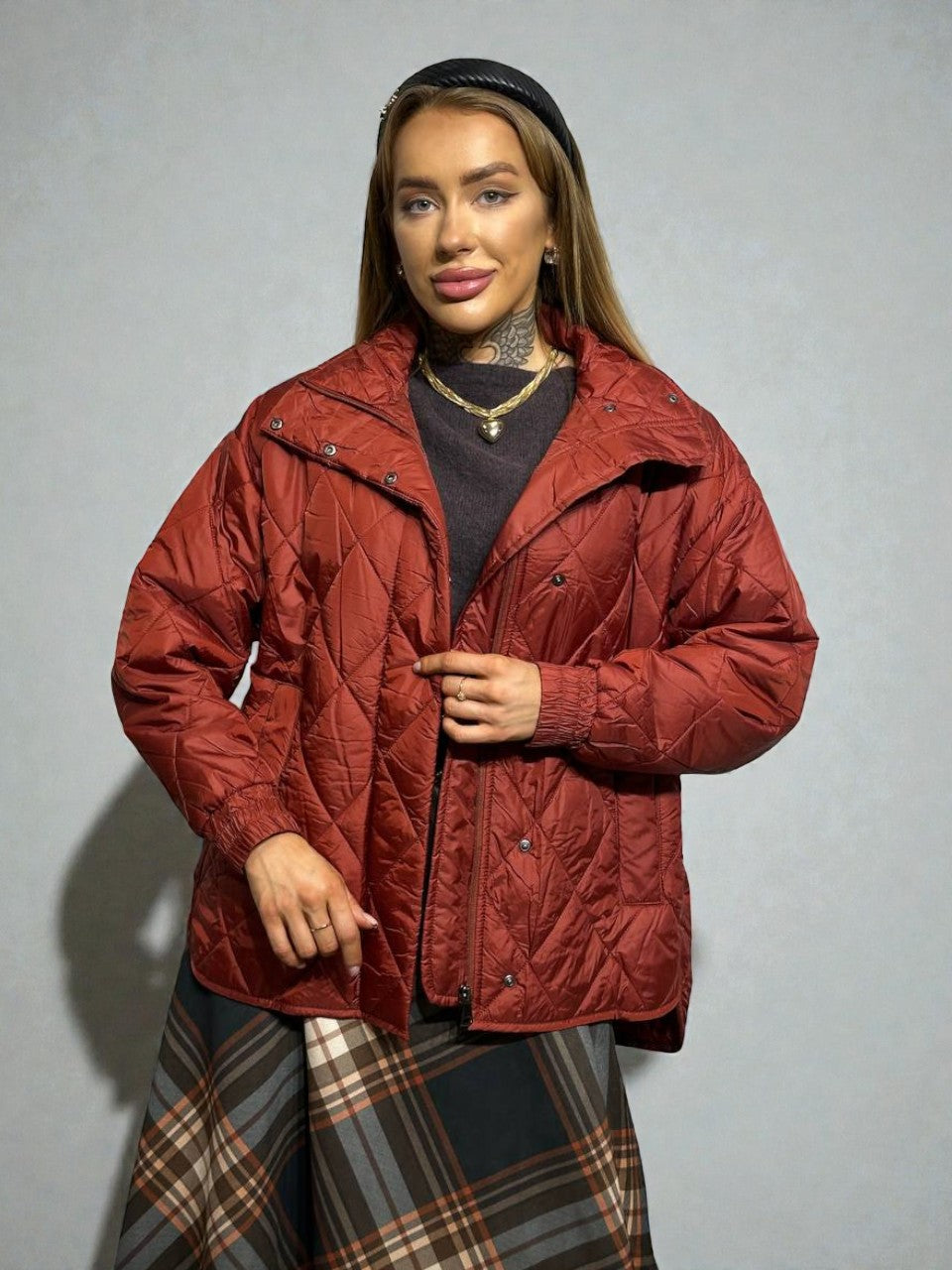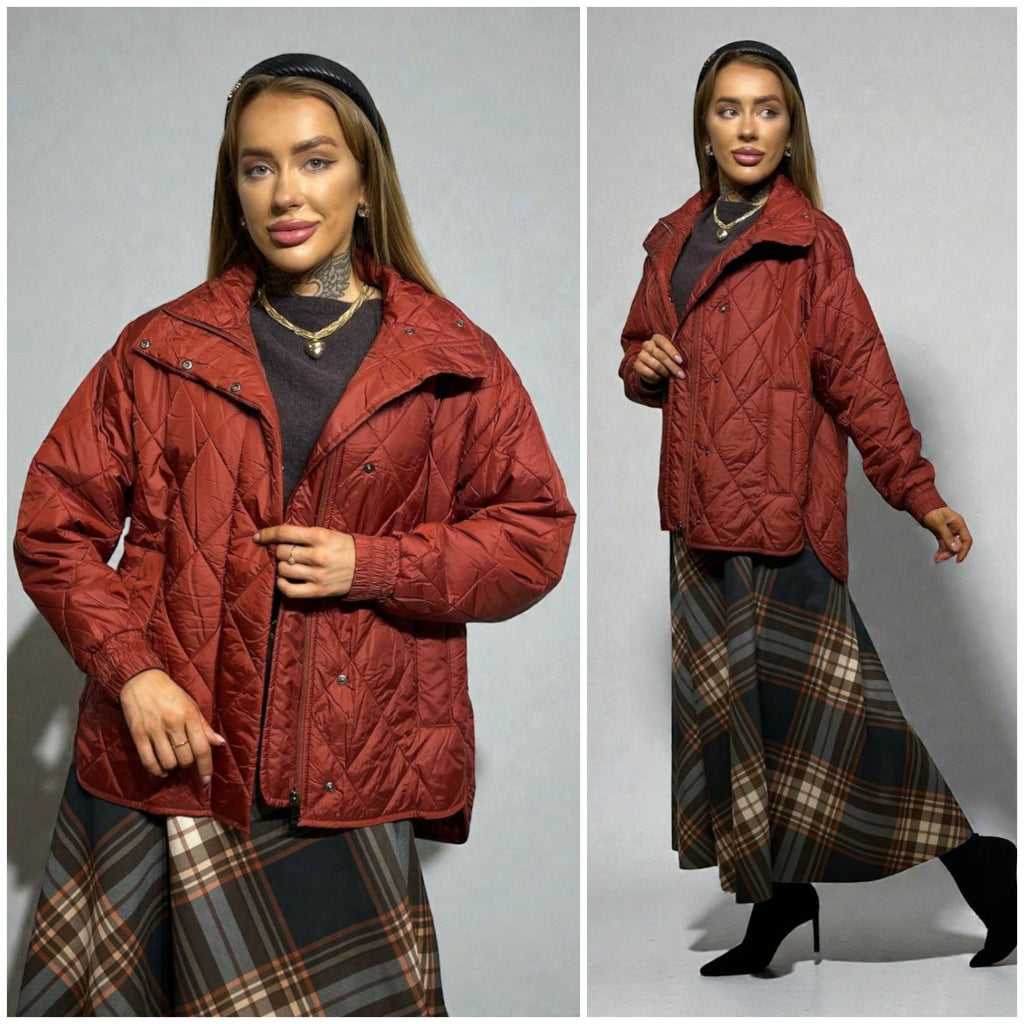 Стеганая ткань обеспечивает приятное тепло, в то время как пояс подчеркивает талию и придает куртке изысканную форму. Универсальная длина и современный цвет позволяют легко сочетать её с любым гардеробом. Стильный выбор для осени и зимы - легкая, удобная и визуально привлекательная.